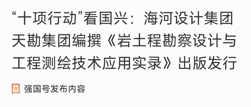 “十项行动”看国兴:海河设计集团betway88集团编撰《岩土程勘探设计与工程测绘手艺应用实录》出书刊行